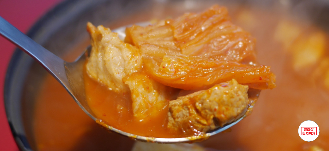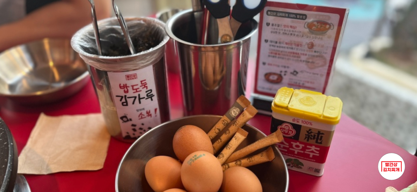 모든 테이블이 김치찌개와 같은 빨간색으로 통일하여 식욕을 돋게하고 재미있고 아기자기한 인테리어로 젊은 김치찌개집을 만들었습니다.